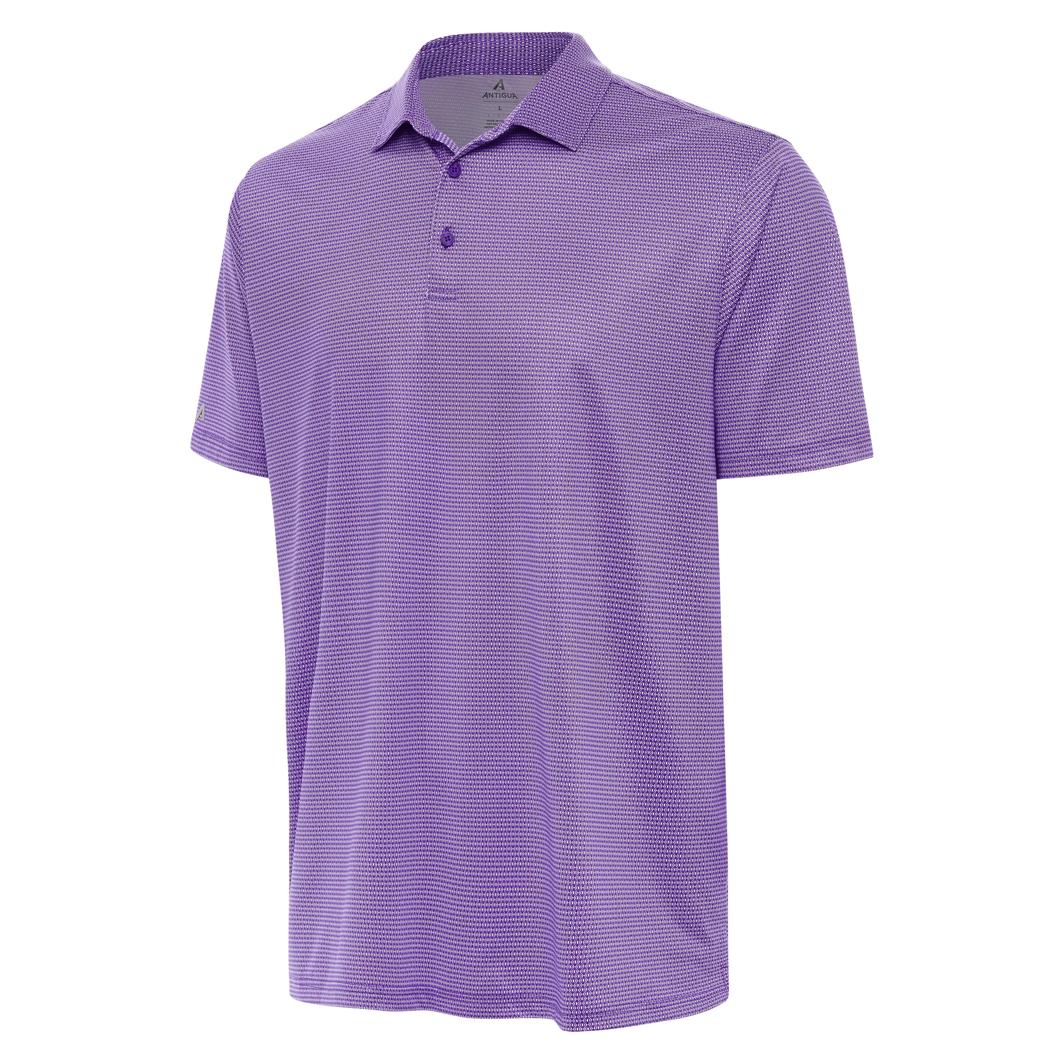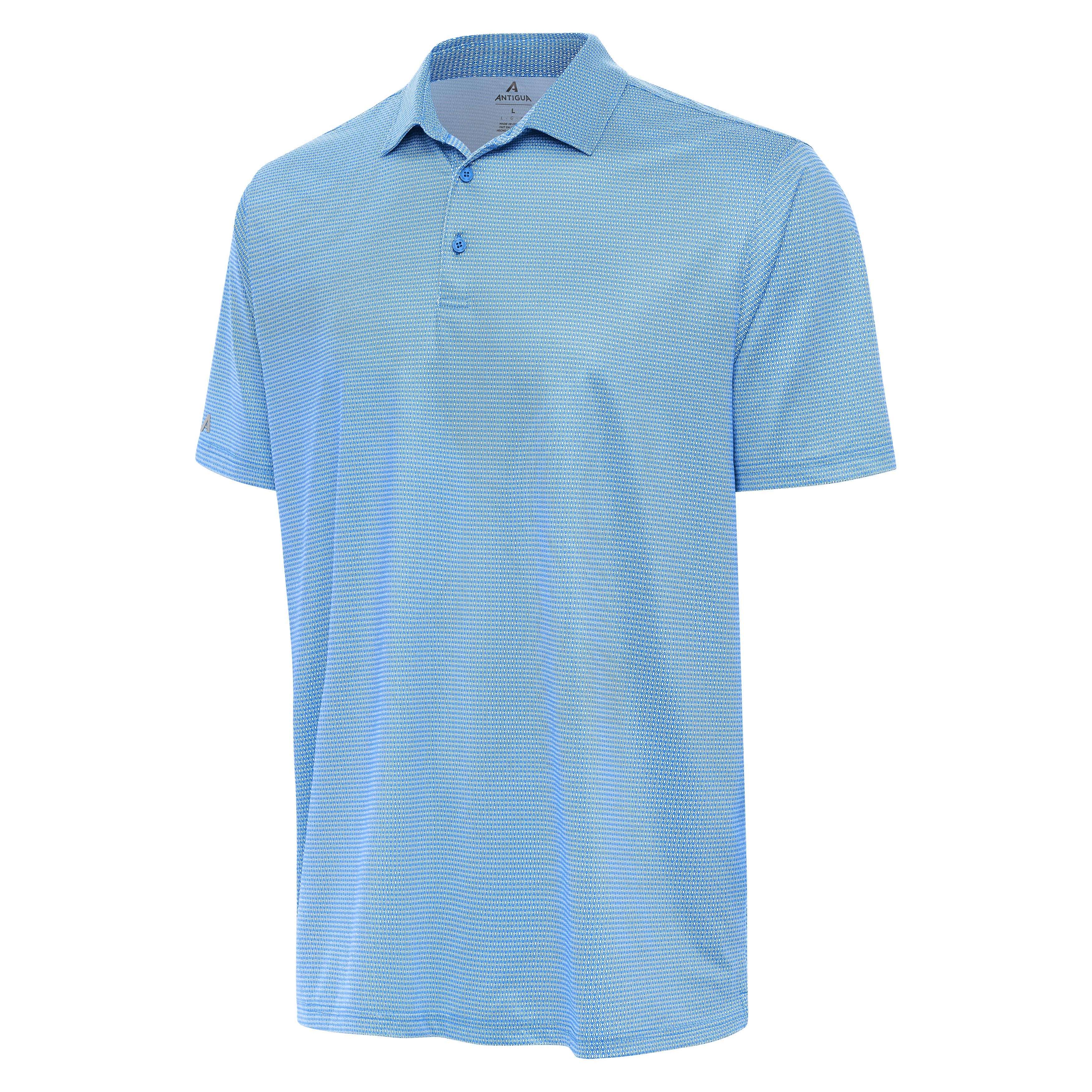 Upgrade your wardrobe with this polo's monochromatic micro geo print. The subtle pattern offers a touch of personality without being overwhelming. Our poly-sheen fabric offers moisture-wicking properties and a four-way stretch for ultimate comfort no matter where you go. Notice our standard comfort-fit sleeves that are engineered to hit above the elbow to give you a full range of motion and a clean look. This polo is a must-have for both style and function.