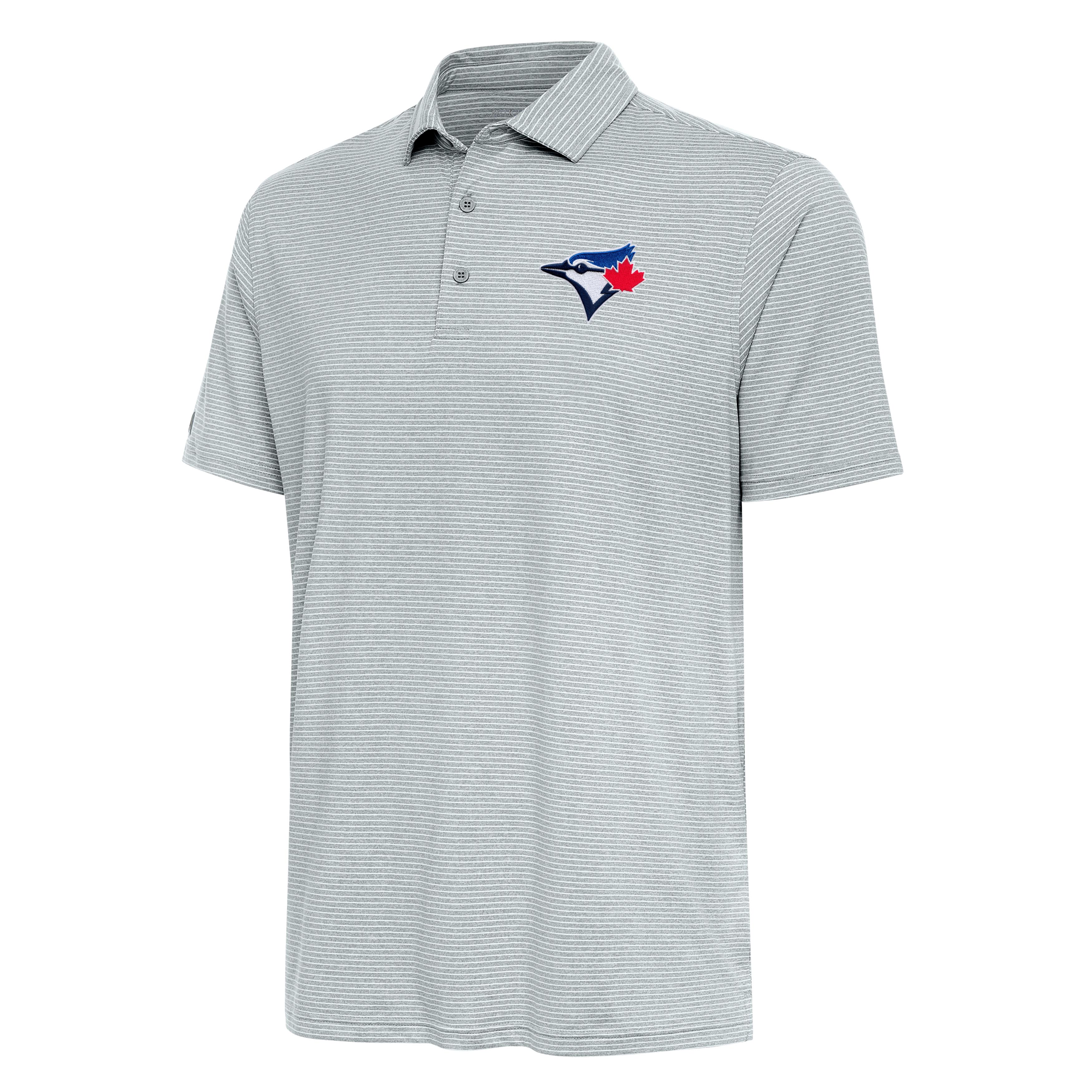An everyday favorite gets a breath of fresh air. Our Scheme polo is crafted from our signature brushed heather poly-stretch fabric for all-day lightweight comfort. Designed for ease of movement, it features a rolled shoulder seam and our comfort-fit sleeves that land just above the elbow. Stay cool and look fresh with moisture-wicking tech. The distressed heather stripes add a touch of style that makes this piece perfect for any occasion. The Toronto Blue Jays logo is featured at left chest.