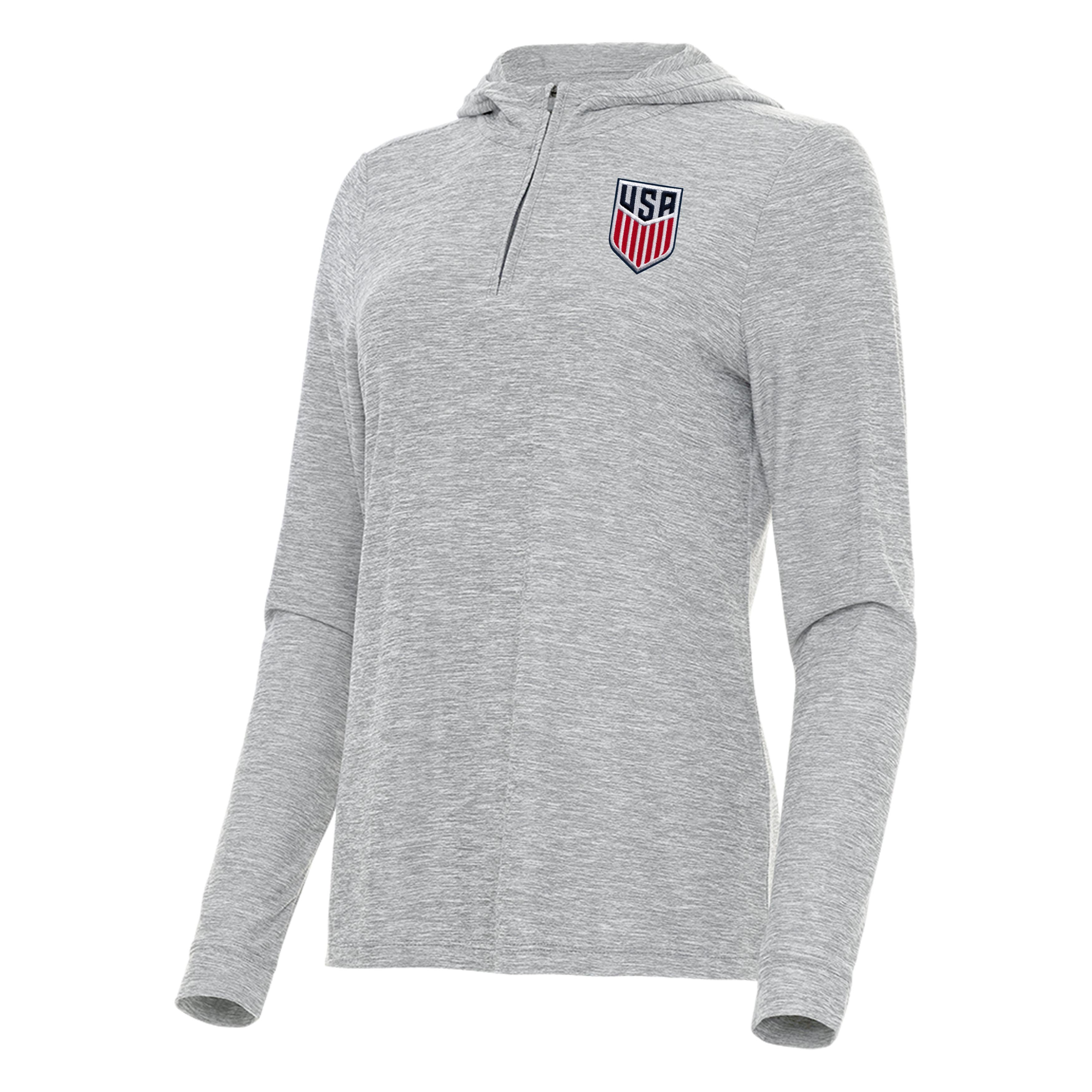 Elevate your everyday wardrobe with this versatile quarter zip pullover. Crafted for comfort in our signature brushed heather fabric, the Daybreak will quickly become your go-to layering piece. The three-panel hood stays put no matter where the day may take you, from workout sessions to weekend hangouts. Enjoy the classic fit silhouette that offers an easy, relaxed drape. Featuring the US Mens National Soccer Team logo on the left chest.