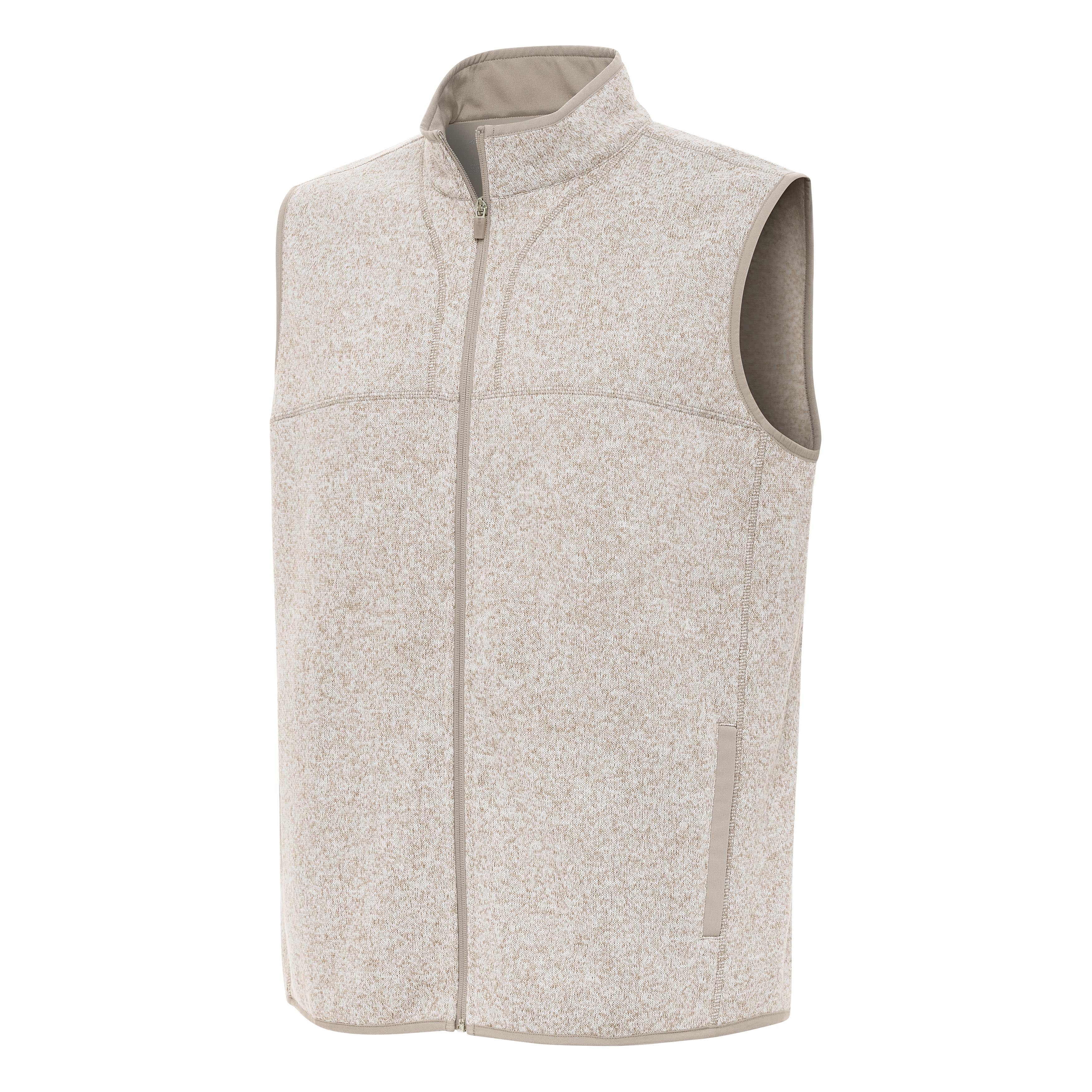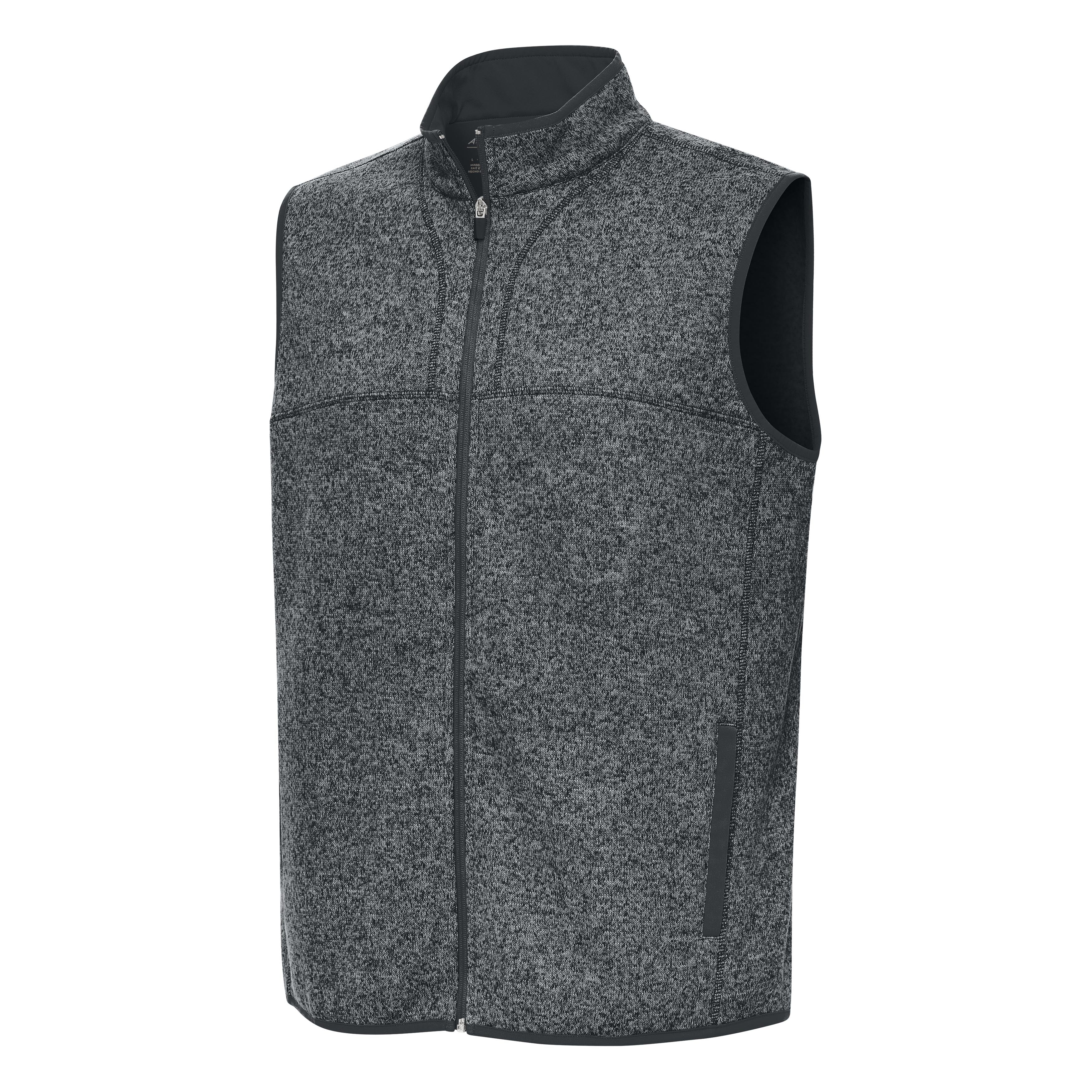 Crafted from luxurious poly sweater knit, this versatile vest brings a stylish upgrade. Effortlessly transition from a polished look on the course to a relaxed vibe after hours. Notice the subtle tonal detail at the seams, hem, and zipper for a touch of understated sophistication.