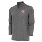 Stay warm in style with the Washington Nationals Hunk Quarter Zip Pullover. Crafted from a luxurious blend of 88% polyester and 12% spandex brushed heather jersey fabric (186gsm), this pullover offers the perfect combination of comfort and flexibility for any occasion. Stay warm in style with the Washington Nationals Hunk Quarter Zip Pullover. Crafted from a luxurious blend of 88% polyester and 12% spandex brushed heather jersey fabric (186gsm), this pullover offers the perfect combination of comfort and flexibility for any occasion. Featuring the iconic Nationals logo at the left chest, your team spirit is on display with a touch of understated elegance. The self-collar band adds a polished look, while the covered coil zipper with a dark antique nickel zipper pull enhances the overall aesthetic. Designed with both fashion and functionality in mind, the Antigua 'A' on the right cuff adds a subtle yet distinctive detail. Whether you're heading to the game or simply braving the elements, the Washington Nationals Hunk Quarter Zip Pullover is the ultimate choice for fans who appreciate comfort and style.