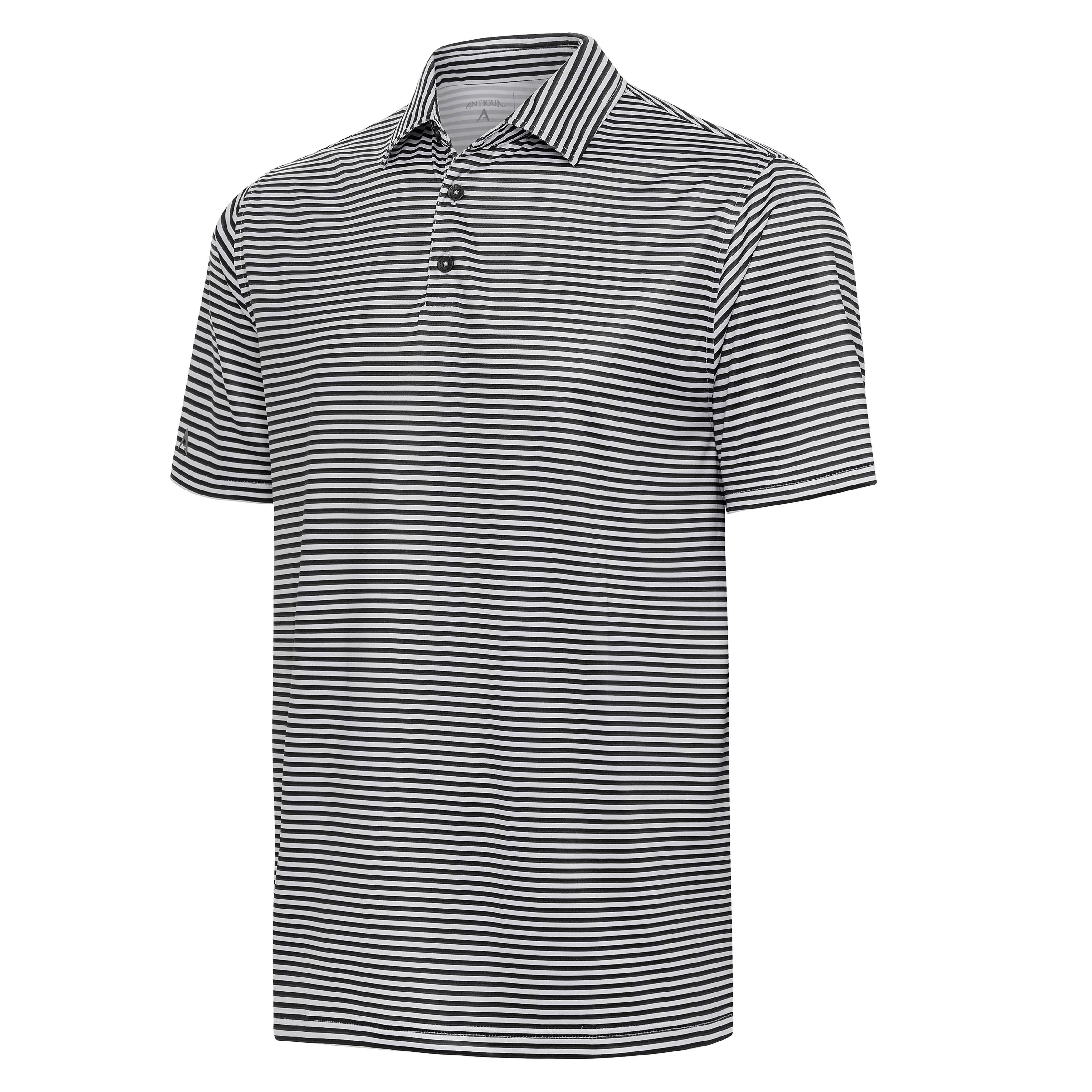 Our twist on your classic striped polo features a monochromatic double stripe contrasted by white. Crafted in our sleek poly-sheen jersey fabric, the Skills polo goes from the golf course to main course in style. Notice the rolled shoulder seams and our standard comfort-fit sleeves that inspire you to expect better. The high-low hem with side vents lets you wear it tucked or untucked for ultimate versatility.